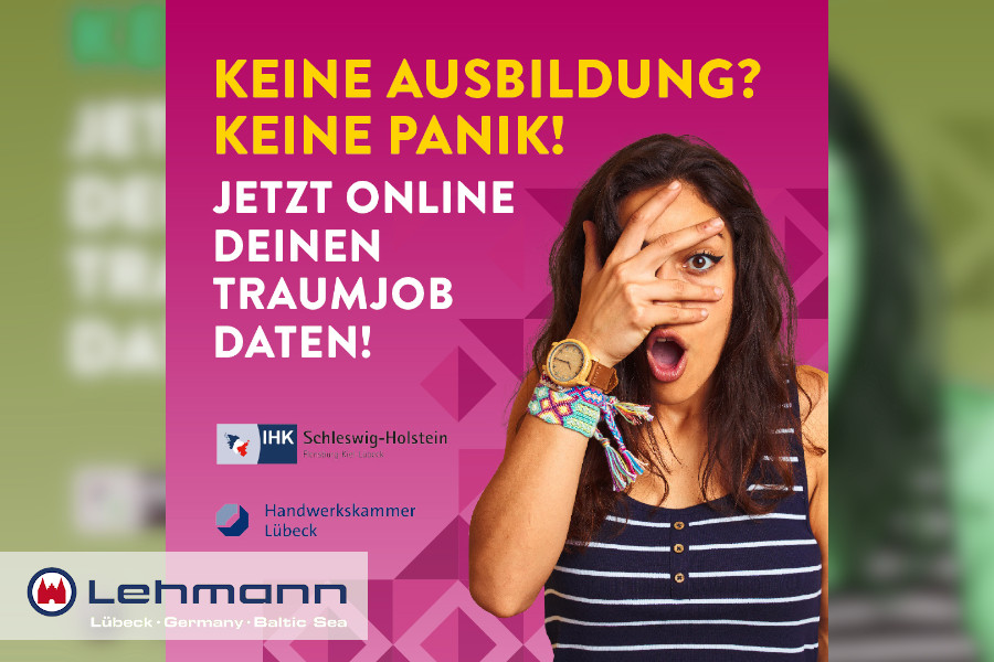 Vereinbare vom 03. – 21.05.2021 deinen individuellen Online-Termin und lerne unser Unternehmen kennen! Über das Portal „Ausbildung jetzt SH“ der IHK Schleswig-Holstein und der Handwerkskammer Lübeck kannst du mit wenigen Klicks einen Wunschtermin mit uns verabreden – damit steht deiner Traumausbildung nichts mehr im Wege! ausbildung-jetzt-sh.de Unternehmen: Lehmann GmbH