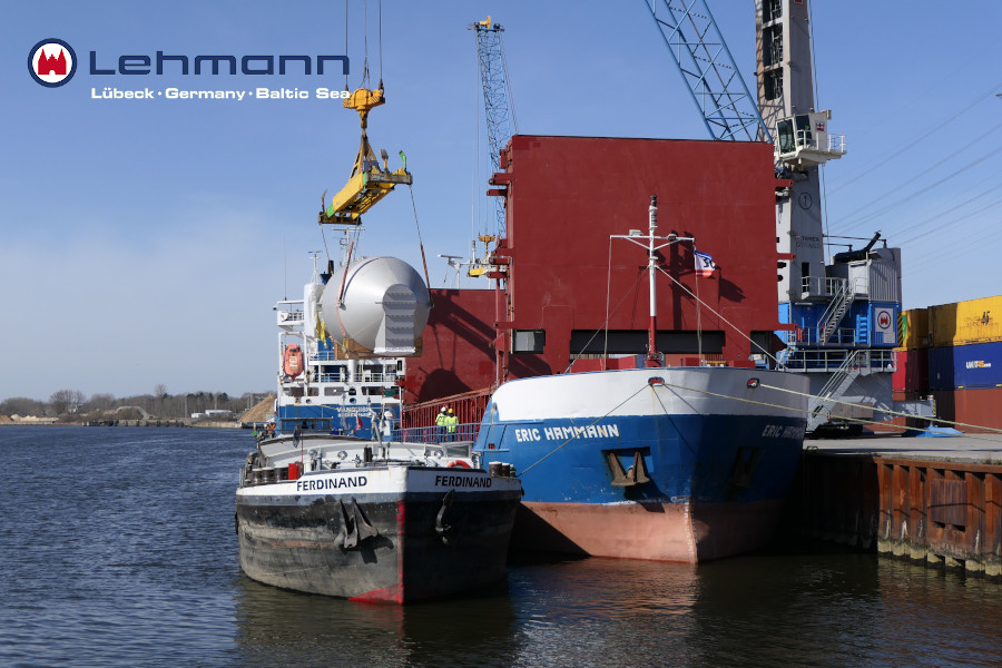 Heute wurde am CTL ein Wirbelschichtapparat "Bord-zu-Bord" von MS Eric Hammann auf das MK Ferdinand gelöscht und geladen. Dieser Maschinentyp dient der Trocknung von flüssigen oder feuchten Materialien in verschiedenen Wirtschaftszweigen. Die Maschine wurde aus Stettin nach Lübeck verschifft, um von hier aus mit dem Binnenschiff weiter über die Binnenwasserstraßen nach Sachsen-Anhalt transportiert zu werden. Dank der 51m Auslage sind unsere Hafenmobilkräne bestens für einen solchen Umschlag gerüstet.