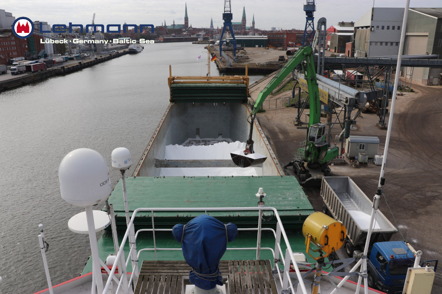 Ein weiteres Lehmann-Schiff zu Gast in Lübeck: MS Alessandra Lehmann löscht ebenfalls Dünger aus Sillamae in Estland. Anschließend geht es für sie nach Liepaja in Lettland zum Laden von Holzprodukten.